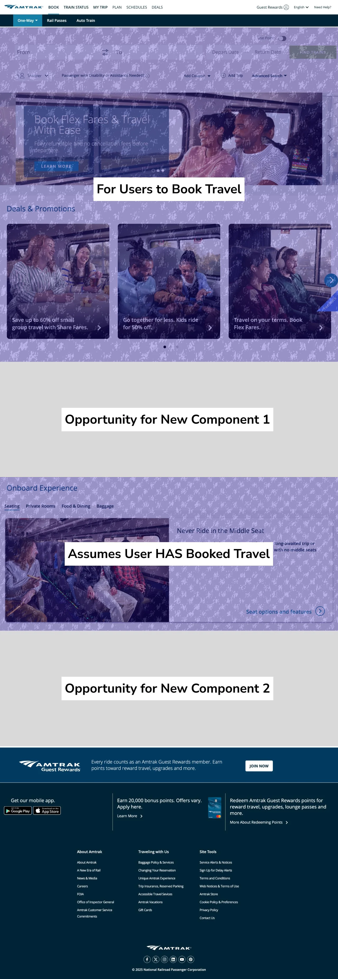 While reviewing the four items in the “Travel Tips” component, I noticed that three of them (“Trip Planning Map”, “Mobile App”, and “RideReserve”) were meant for users who had yet to book travel, while “Track Your Train” would only be relevant to users who already had a specific train in mind, and thus, likely already had travel plans. That gave me the idea to split “Travel Tips” into two components, one for users planning travel and one for those who had already booked travel.